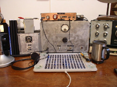 Well, we’re the Knights, right? So we should have a few wizards. Eddie, G3ZJO, should certainly be among those so honored. Above you can see his “G Beacon” MEPT transmitter. He uses two 555 chips to generate the G letter in Morse code. The longer chip on the bottom is (I think) the RF part of the transmitter. Ingenious. I also like his selection of frequency: 10140073 Hz. FB.