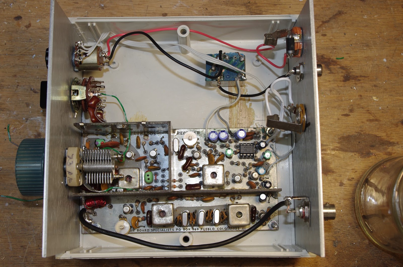 After a rather frustrating period working on the Hallicrafters S38-E, I decided to do something different, maybe work on something that isn’t known as a “widow maker.” So pulled off the shelf an old Doug DeMaw Barbados Superhet Receiver. “Barbados” sounds much nicer than “widow maker.” This design and this particular receiver have quite a history: