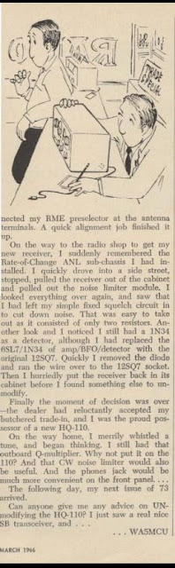 Michael mentioned this article in the Comments section under yesterday’s post. March 1966 issue of 73 magazine. Page 26. Just click on the images for easier reading. Or you can find the article here: