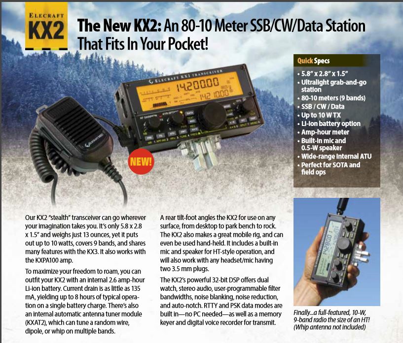 Pete and I were very pleased to see that Elecraft made use of our beloved Si5351 chip in their amazing new KX2 rig. Check it out: