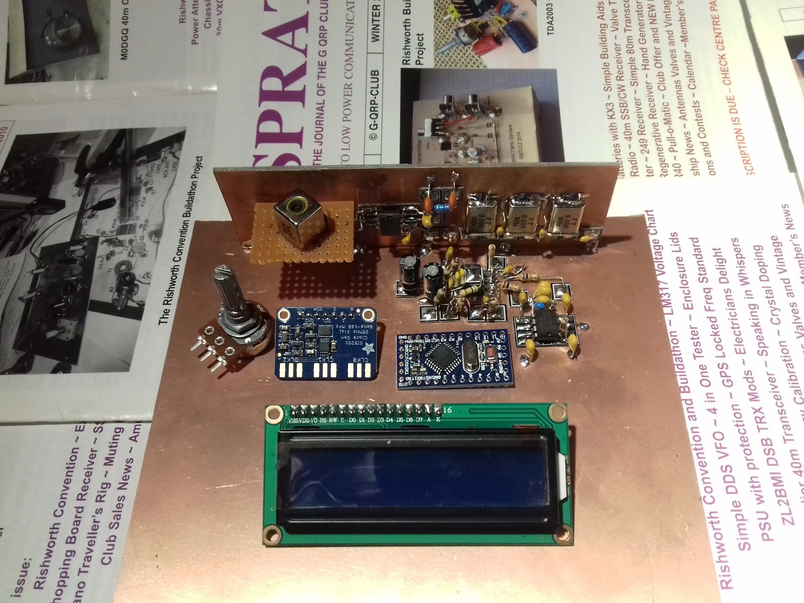 The oscillator started right up. I had to add and then take away some turns on the coil to get it to run in the desired range. Then I plugged it into the DDS jack — the receiver was working immediately.