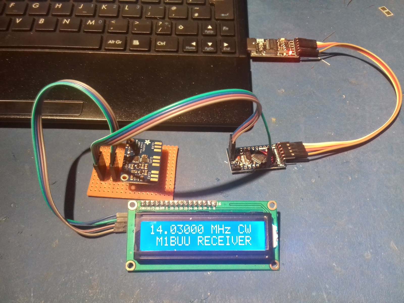 I noticed, however, that it seemed a bit less sensitive than it had been with the AD9850 DDS. And when I grabbed the wire going into the DDS connector, audio output jumped dramatically. It took me a few minutes to figure that out: I think the output from my VFO was not adequately turning on the diodes in the diode ring. When I grabbed the wire, I was putting a lot of noise into the mixer port, probably turning the diodes more fully on (but also letting a lot of noise through).