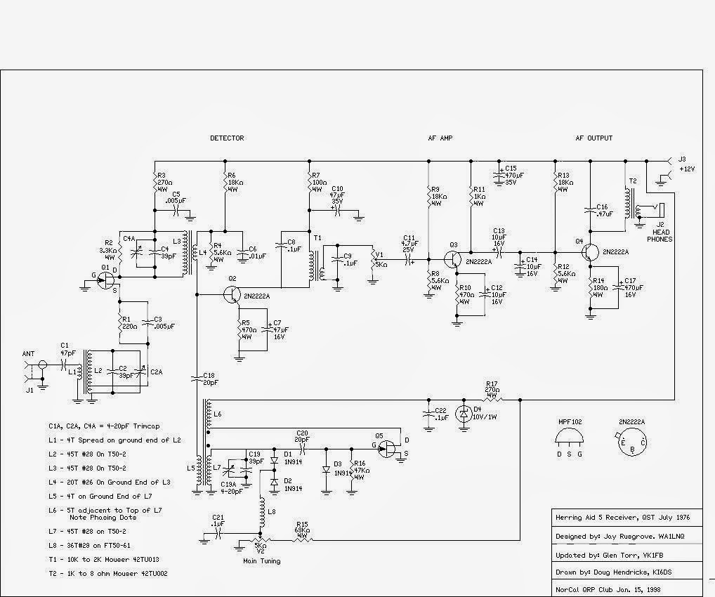 Yea, take a look at C14 in the AF amp. At 1000 Hz 10uF is about 16 ohms. That would put a serious dent in the AF gain. And indeed, when I went back to my Herring Aid 5 (38 years from start to finish) and pulled C14 out, there was a dramatic increase in AF gain.