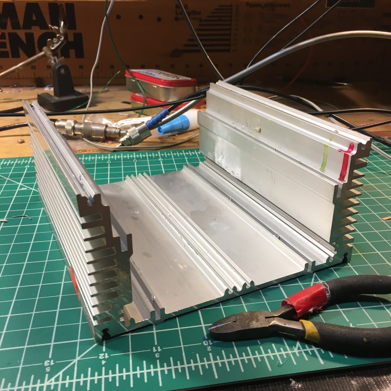 But sometimes people just deliberately put temptation in your path. That is what happened this week. Our old friend Rogier KJ6ETL (formerly known as PA1ZZ) sent me the very LARGE chunk of aluminum that you see in the picture above. Look at that thing. It is practically begging to be turned into a very QRO push-pull amplifier.