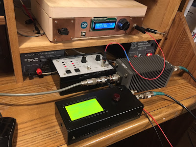 But first came a tightening up of the test setup. Pete advised me to do this. I had in the shack some really nice dummy load/attenuators from the HP8640B Signal Generator that Steve Silverman had given me (and that Dave Bamford had hauled across New York City for me). I ordered the necessary N connectors and adapters and soon my test setup improved a lot.