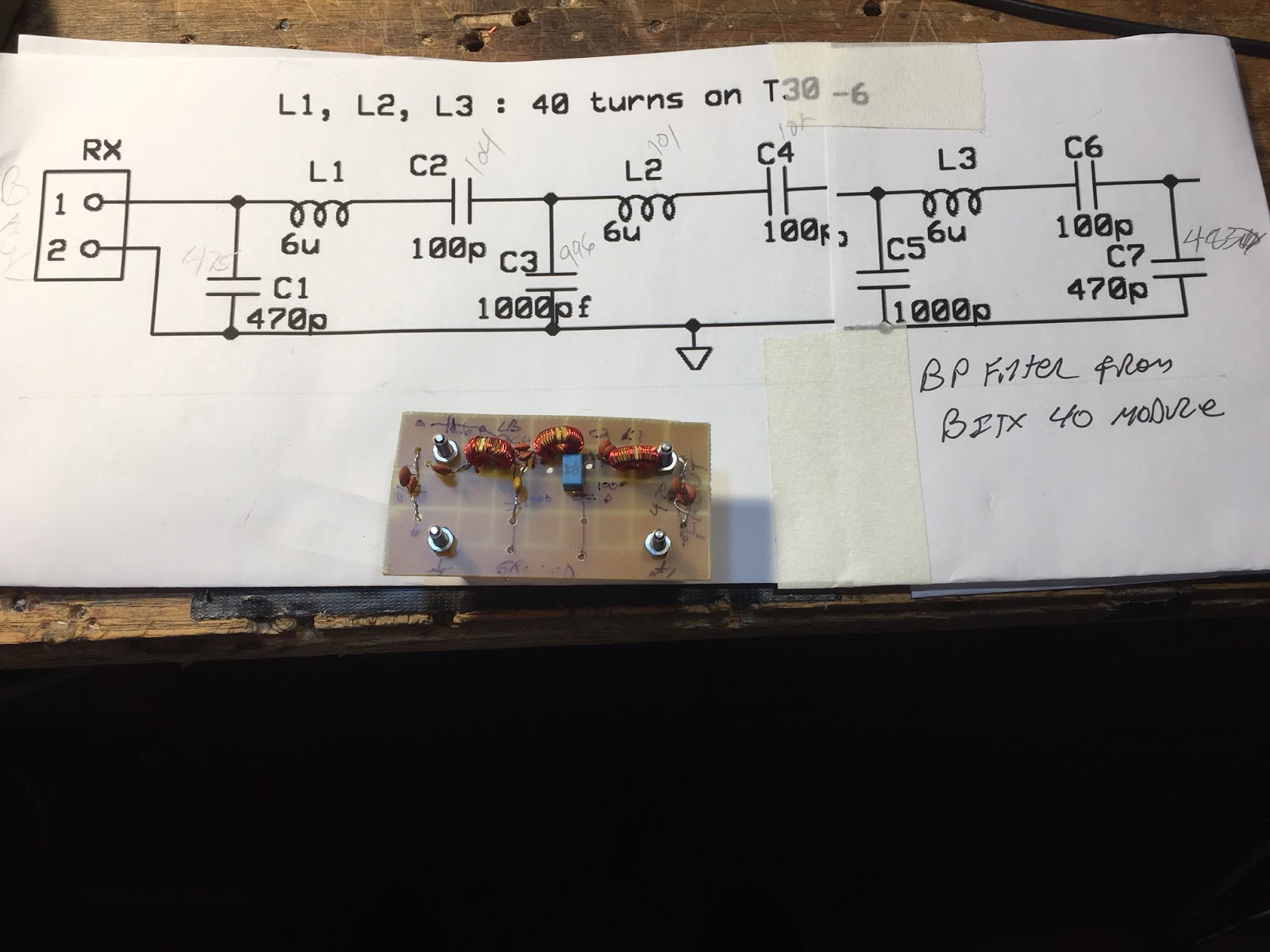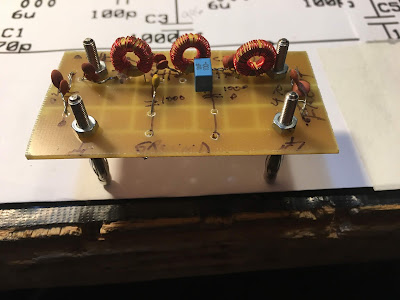 For the exorcism, I decided to use the bandpass filter design from Farhan’s BITX-40 Module. I had made the BP filter on this rig “plug-in” so it was easy to build a new filter.