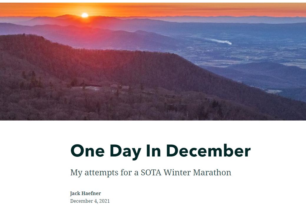 Jack NG2E’s Winter SOTA Marathon in the Shenandoah