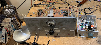I built the transmitter almost 20 years ago. It is in the larger box, which originally housed a Heathkit DX-40. There is a lot of soul in that old machine. Details on this construction project are here: https://soldersmoke.blogspot.com/2021/12/junk-box-sideband-from-azores-2004-qst.html (The smaller box is a Barebones Superhet receiver set up for 17 meters.)
