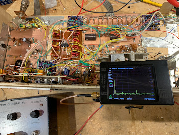 — Allison KB1GMX helped a lot. EB63A amp was unstable, especially on 10 meters. Higher frequencies are harder! Tightened up shielding, negative feedback, and bypassing. This all helped, but I found that I needed to take the higher frequency LP filters out of the amplifier box. W3NQN filters are better, with steeper skirts and better 2nd harmonic rejections. NanoVNA proving very useful. https://www.gqrp.com/Datasheet_W3NQN.pdf
