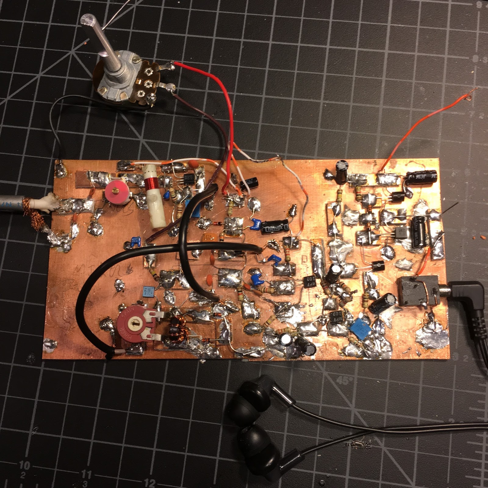Here’s a description of a version of the 7 MHz Jaguey transceiver that Andy built during the pandemic. It looks to me as if he took the Jaguey DSB rig and added a 455 kHz filter with an additional mixer to turn it into an SSB rig. So he is generating the SSB at 455 kHz, and mixing it with a VFO running at around 6.8 MHz. The sum output would put you in the 40 meter band; the difference output at around 6.35 MHz could (mostly) be knocked down by a bandpass filter. I think the Cuban Radio Federation Web Site gets it a bit wrong — the purpose of the filter is probably to eliminate the unneeded sideband, not really to suppress parasitics.