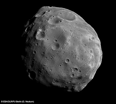 The European Space Agency’s Mars Express probe will be doing the closest ever approach to the Martian moon Phobos. On Wednesday night the spacecraft will come within 67 km of Phobos. They will use a very cool radio technique to gather data about the internal structure of the object (see below).