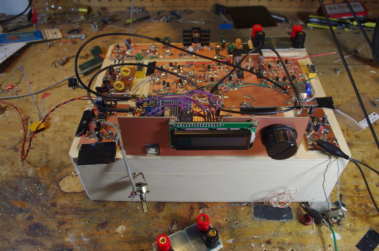 A number of people have encouraged me to make to this change. My co-host Pete Juliano N6QW is clearly the main influence. Pete has made me see the errors of my Ludite ways. He taught me that it is time to put away the Dymo tape and get with it with glowing numerals. Whenever I started getting enthused about VXOs or about Permeability Tuned Oscillators using brass screws moving through hand-wound coils, Pete was there to remind me of the beauty, simplicity, and efficiency of Arduino Microcontrollers and Si5351 chips. Paul Darlington M0XPD contributed an element of old world legitimacy to this push for modernity. Tom Hall AK2B was another influence — whenever I was on the verge of quitting, he’d Skype in from the Big Apple and get me back on the digital track. And we can’t forget Farhan over in India – as soon as he started putting Arduinos and Si570s in his Minima, I knew this was really, as the kids say, “a thing.”