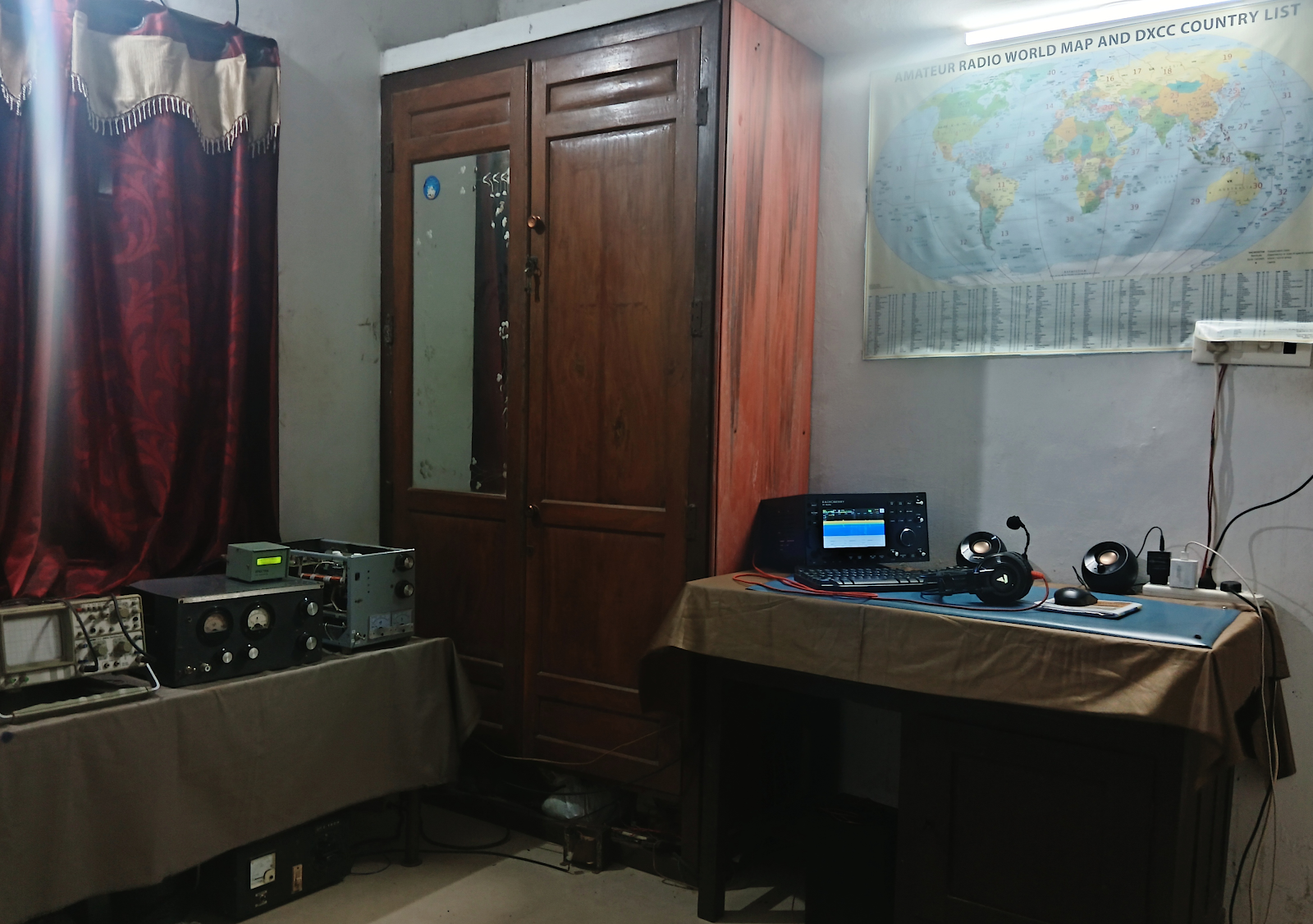 At first I didn’t realize it was Denny. On September 11, 2023 at about 2330Z I had walked back into the shack after dinner. I think DX spots showed an Indian station on 20 meter SSB. Without realizing who it was, I tuned him in on my Mythbuster rig, heard the other station sign off, and quickly threw in my call. Denny came back to me right away, and I think both of us then realized that we recognized the call of the other station. Wow, it was Denny, VU2DGR, the Wizard of Kerala! At the time of the QSO, I didn’t have my phone with me; after we spoke, I went to get it, so the video above captures part of Denny’s subsequent contact. (You can also at one point hear Guapo barking.)